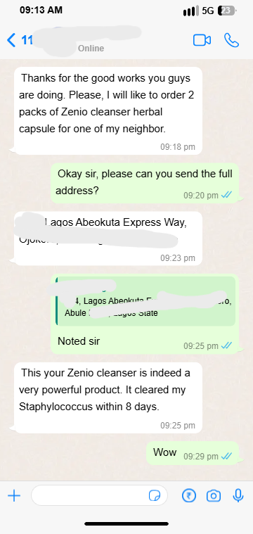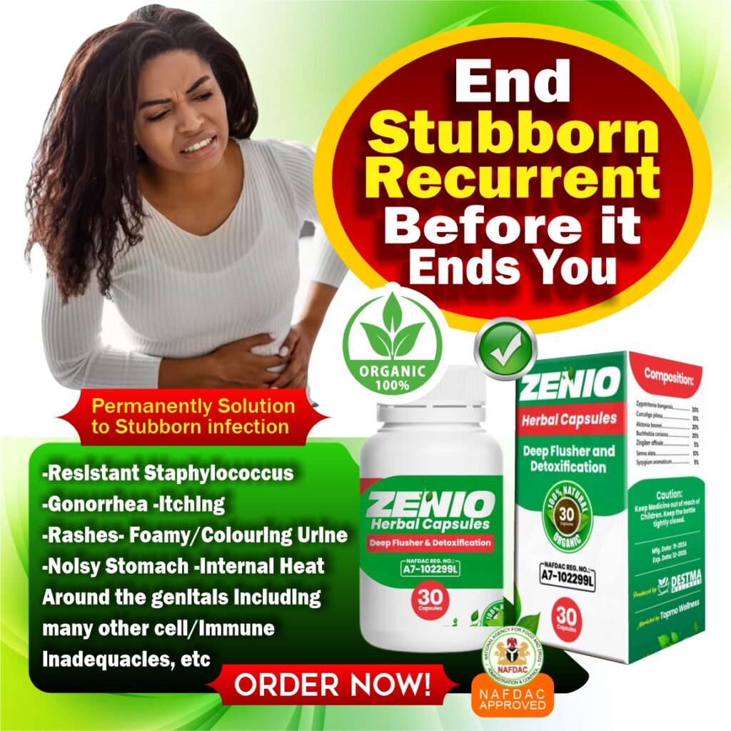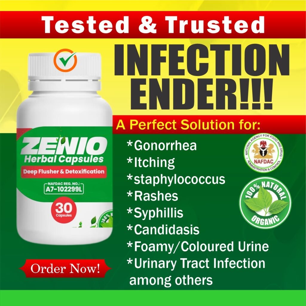Zenio cleanser is the only permanent treatment for stubborn Infection. Refund available if Zenio doesn’t work for you after using recommended dosage. 100% NAFDAC APPROVED A7-102299L | 100% MONEY-BACK GUARANTEED