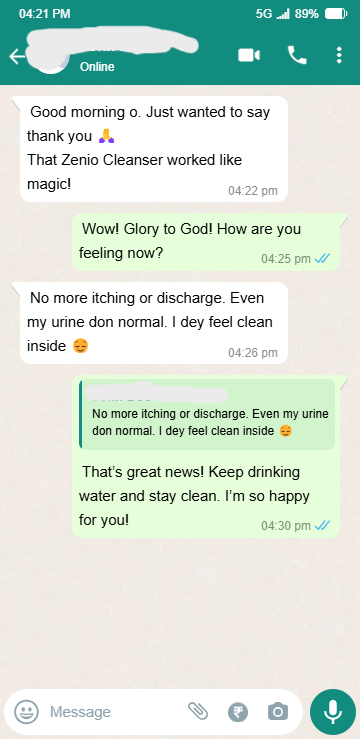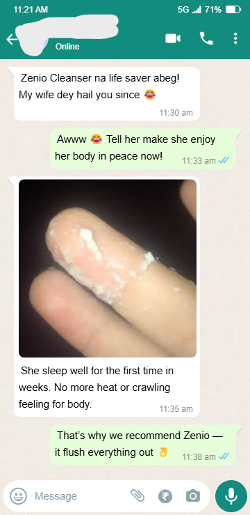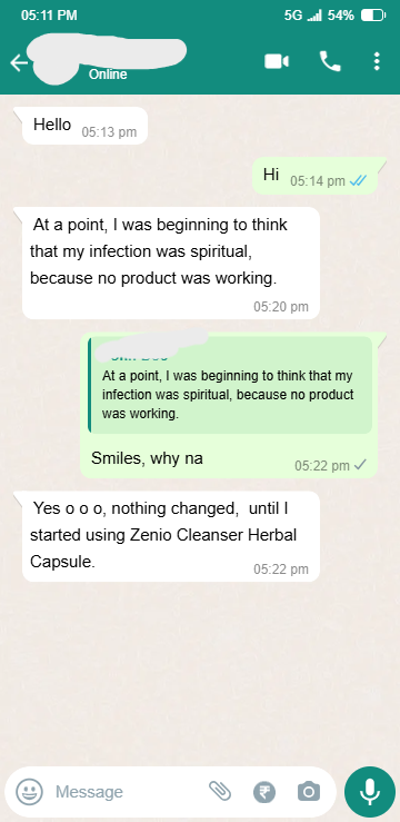 Zenio cleanser is the only permanent treatment for stubborn Infection. Refund available if zenio did’t work for you after using recommended dosage. 100% NAFDAC APPROVED A7-102299L | 100% MONEY-BACK GUARANTEED